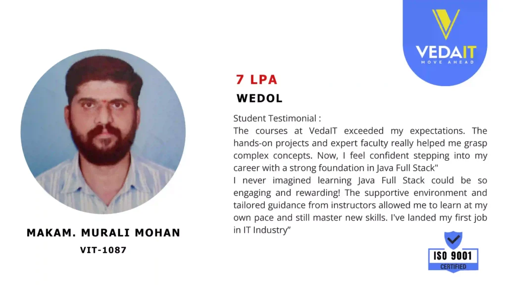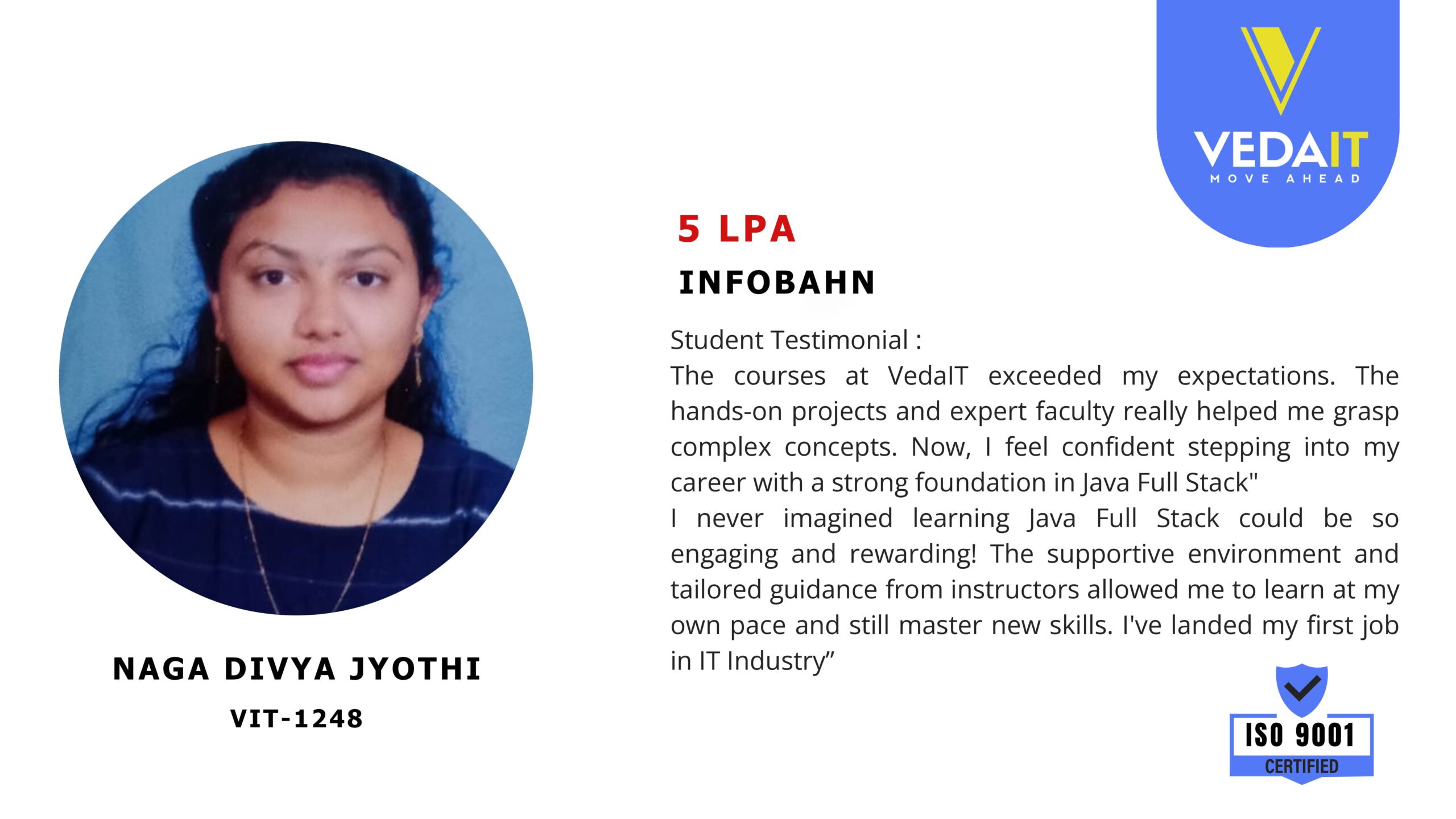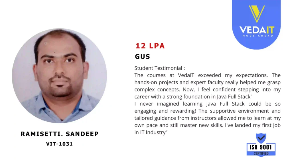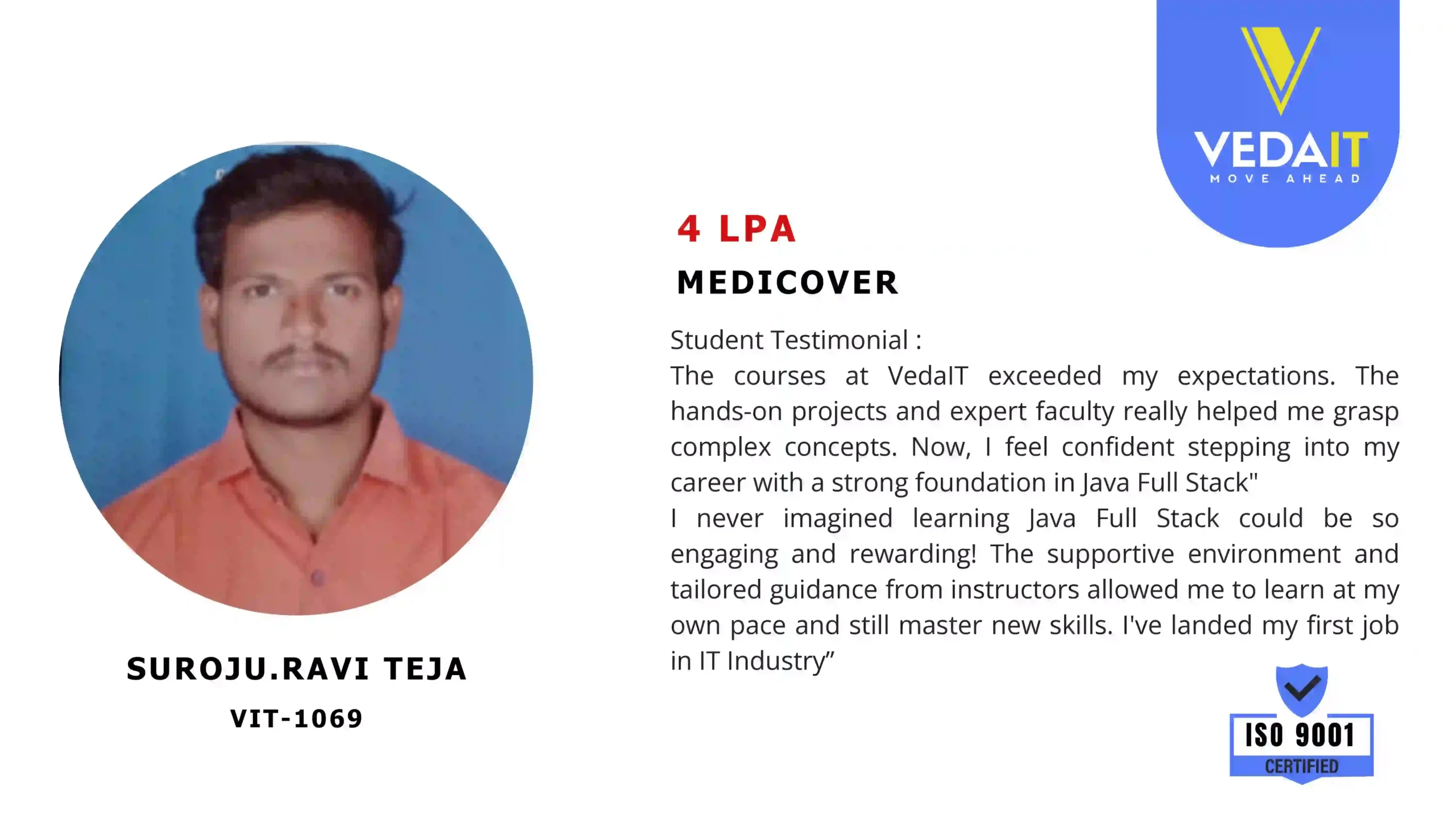 Our comprehensive courses, designed by industry experts, go beyond traditional learning by combining hands-on training, real-world projects, and personalized mentorship. Whether you’re an aspiring tech enthusiast or a professional aiming to elevate your career, VedaIT is your partner in success.